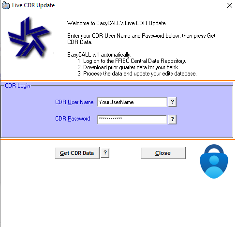 When prompted by EasyCall, enter your CDR username and password:
