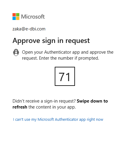 After entering or selecting your e-mail, you will then be prompted to enter a two-digit code into Microsoft Authenticator on your mobile device: